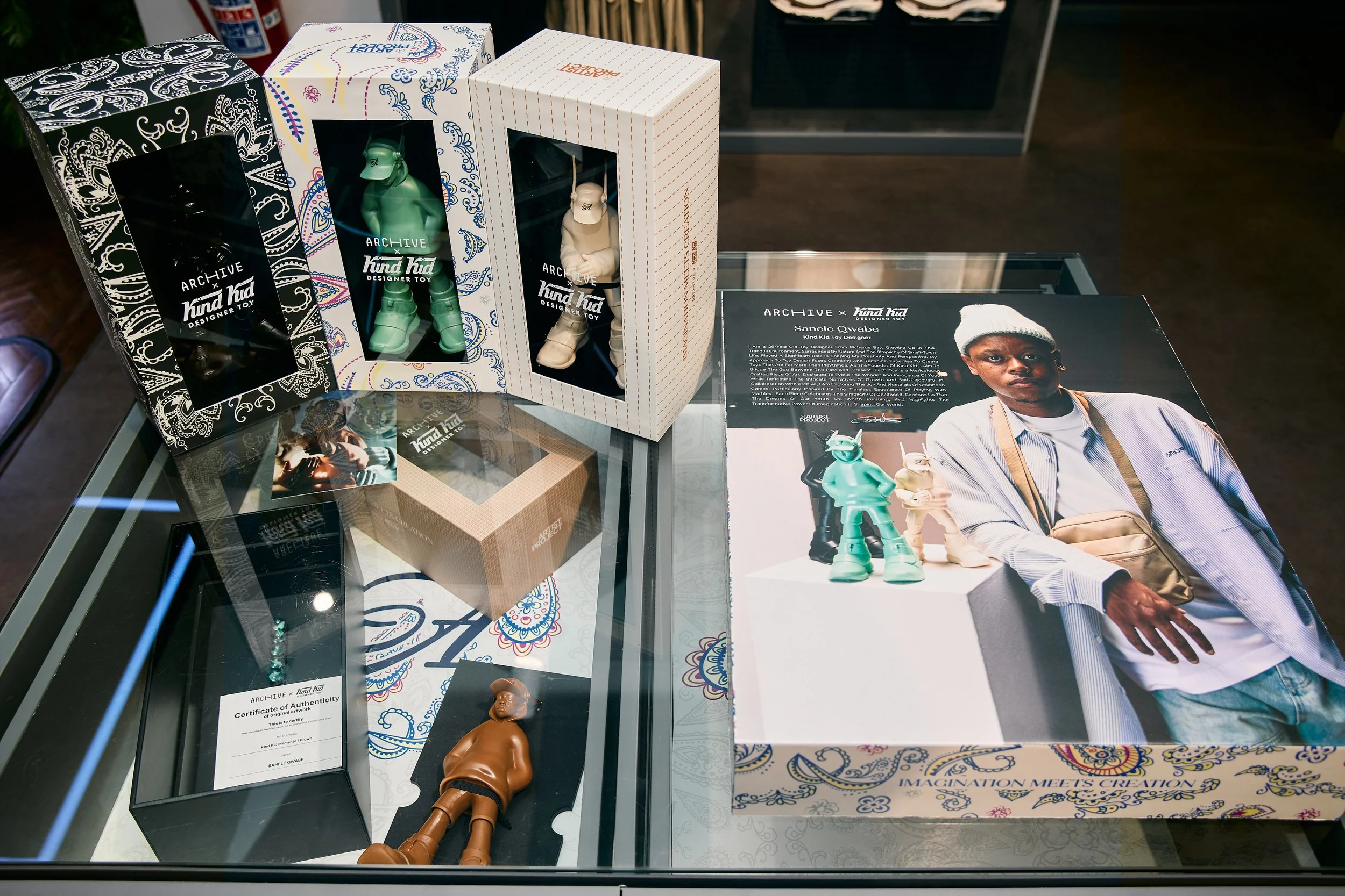 Archive presented its AW/25 campaign and collection titled ‘Imagination Meets Creation’ starring Sanele Qwabe from Kind Kid. Drawing inspiration from timeless classic silhouettes, and blending them with updated paisley prints. The collection was intended to be a playful take on everyday essential ready-to-wear pieces. This drop came with four limited edition toys exclusively designed by Kind Kid.